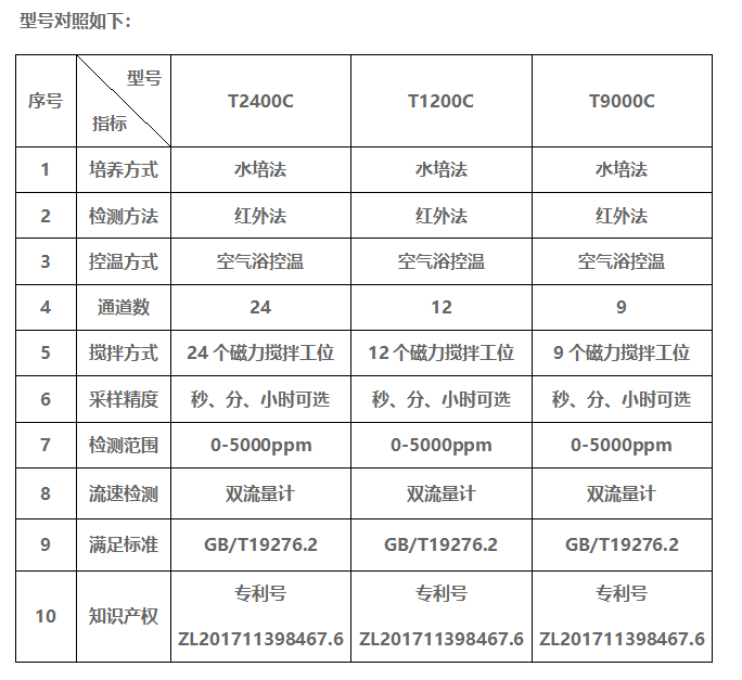 托摩根的水培法生物降解仪目前有三个型号:T2400C、T1200C、T9000C,皆满足国标GB/T19276.2的检测要求。均采用空气浴控温,不仅是独立的红外检测通道,可实时在线测定二氧化碳释放量,检测范围0-5000ppm,而且采样时间可达秒级采样,双流量计检测流速。拥有自主专利,是在水培条件下红外法检测样品生物降解率的不二之选。
