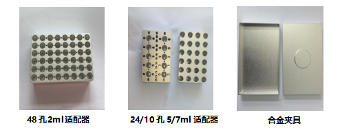 适配器用来盛装装有研磨球和样本的研磨管,放合金夹具中间调好位置放设备上使用。48孔(2ml),正24(5ml)反10孔(7ml)两种规格可选。