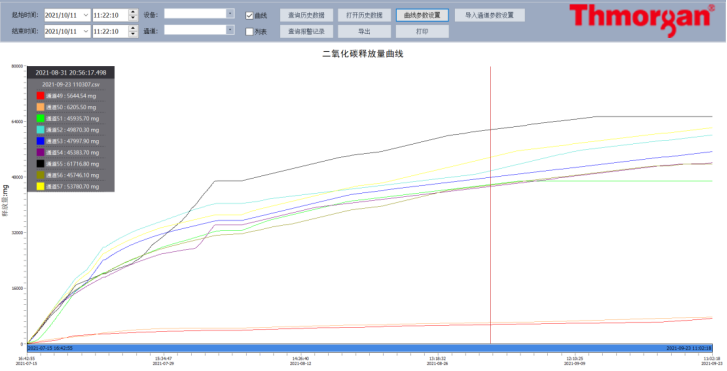 6. 二氧化碳浓度和累积量双显示,可以图表或曲线的形式导出;